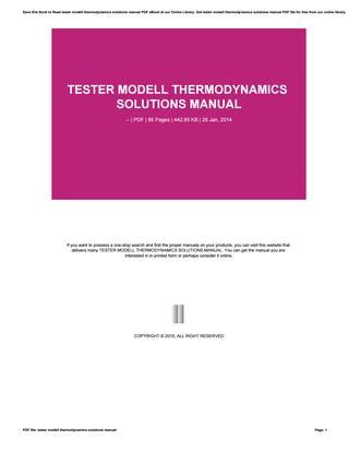 Read TESTER MODELL THERMODYNAMICS SOLUTIONS MANUAL Ebook PDF online is a convenient and frugal way to read TESTER MODELL THERMODYNAMICS SOLUTIONS MANUAL Ebook you love right from the comfort of your own home. Yes, there sites where you can get PDF "for free" but the ones listed below are clean from viruses and completely legal to use.